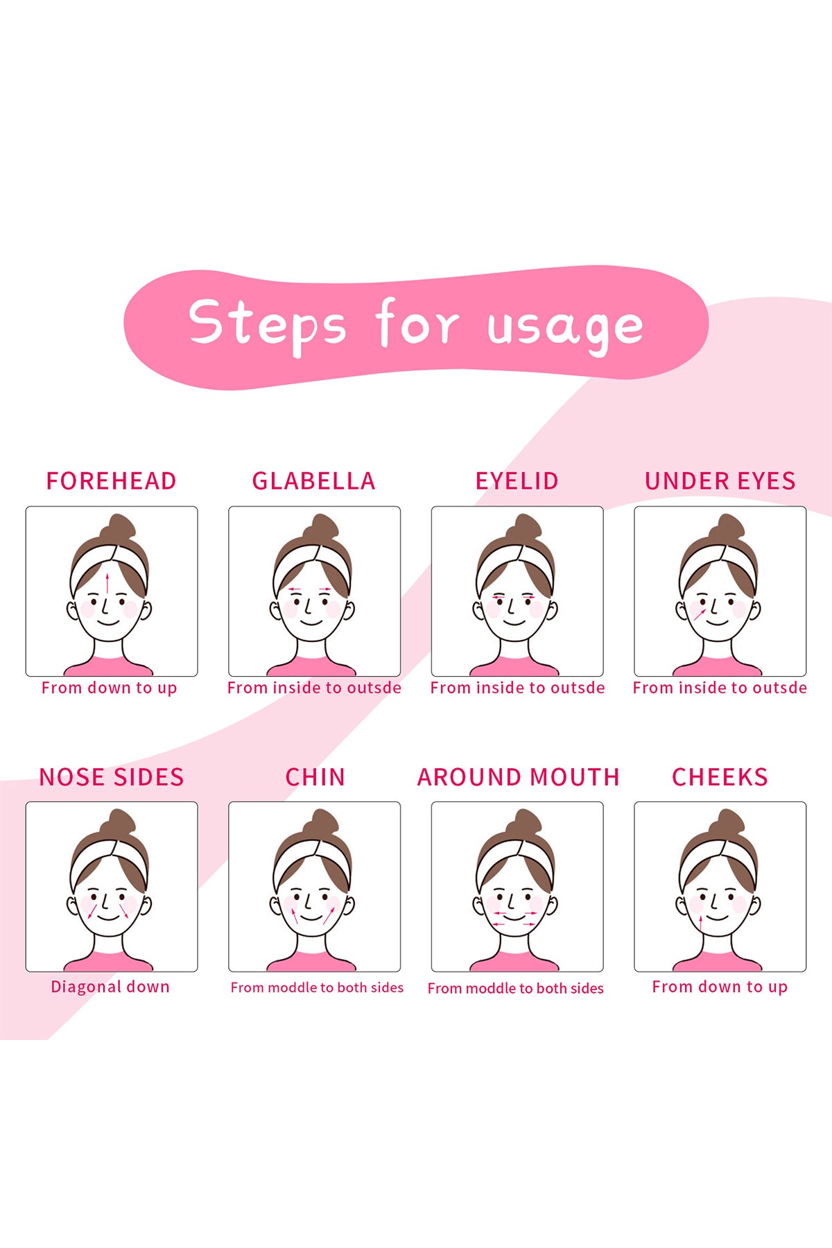 • Büyük silindir alın, yanaklar ve boyun için çalışırken, küçük silindir göz çevresi ve çene altındaki cildi daha iyi masaj yapar.