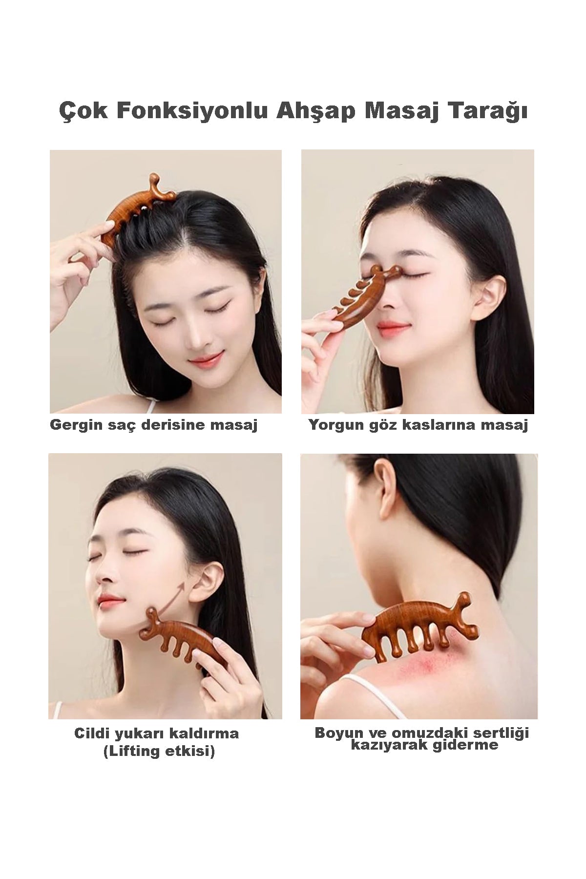 Doğal Ahşap Yüz vücut Masaj Tarağı - %100 Sandal Ağacı