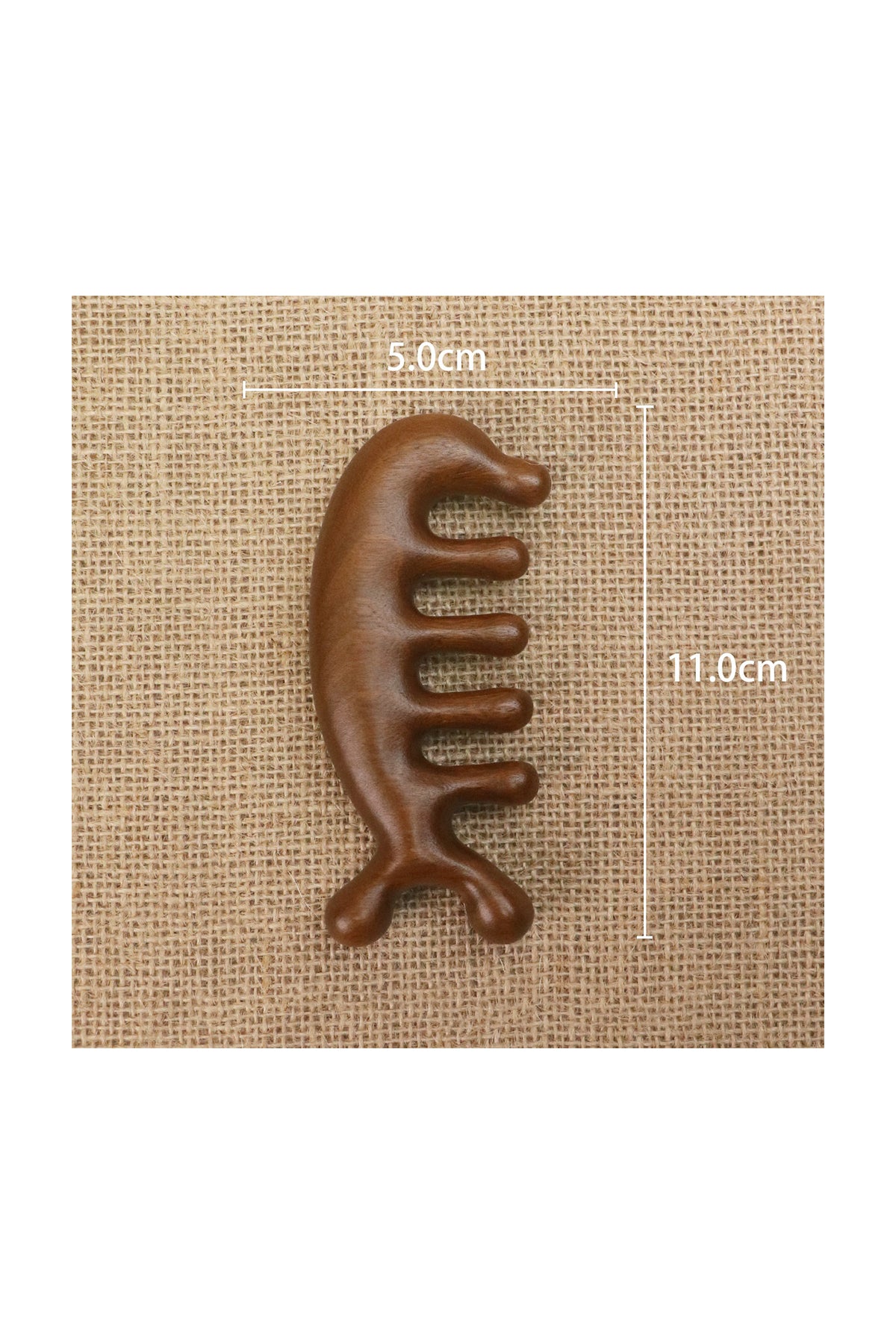 Renk: Doğal Ahşap Rengi (Her ürün birbirinden farklılık gösterebilir) •%100 doğal sandal ağacından üretilmiştir.; Kenarları ve tarak dişleri özenle parlatılmıştır, bu sayede yüz, boyun, vücut ya da saç derisine masaj yaparken cildinize zarar vermez.; •Sandal ağacından yapılan bu tarak, saçtaki doğal yağı plastik taraklara göre daha eşit şekilde saç uçlarına kadar dağıtarak saçın parlak ve sağlıklı görünmesini sağlar.; Statik elektriği önler, kabarmayı azaltır ve saç kırılmasını engellemeye yardımcı olur.; •Lenf drenaj masajı için oldukça uygundur; meridyenleri açmaya, kan dolaşımını artırmaya ve stresi azaltmaya yardımcı olur.; Boyut: 11.3 x 5.2 cm Net Ağırlık: 35g